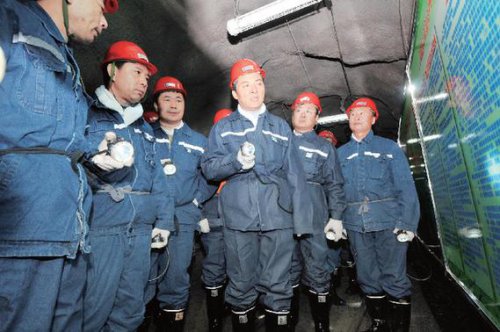 9月11 日上午,市委書(shū)記張憲軍在副市長(cháng)郭杰及相關(guān)部門(mén)負責同志的陪同下,深入到我公司九井井下檢查煤礦安全生產(chǎn)工作。